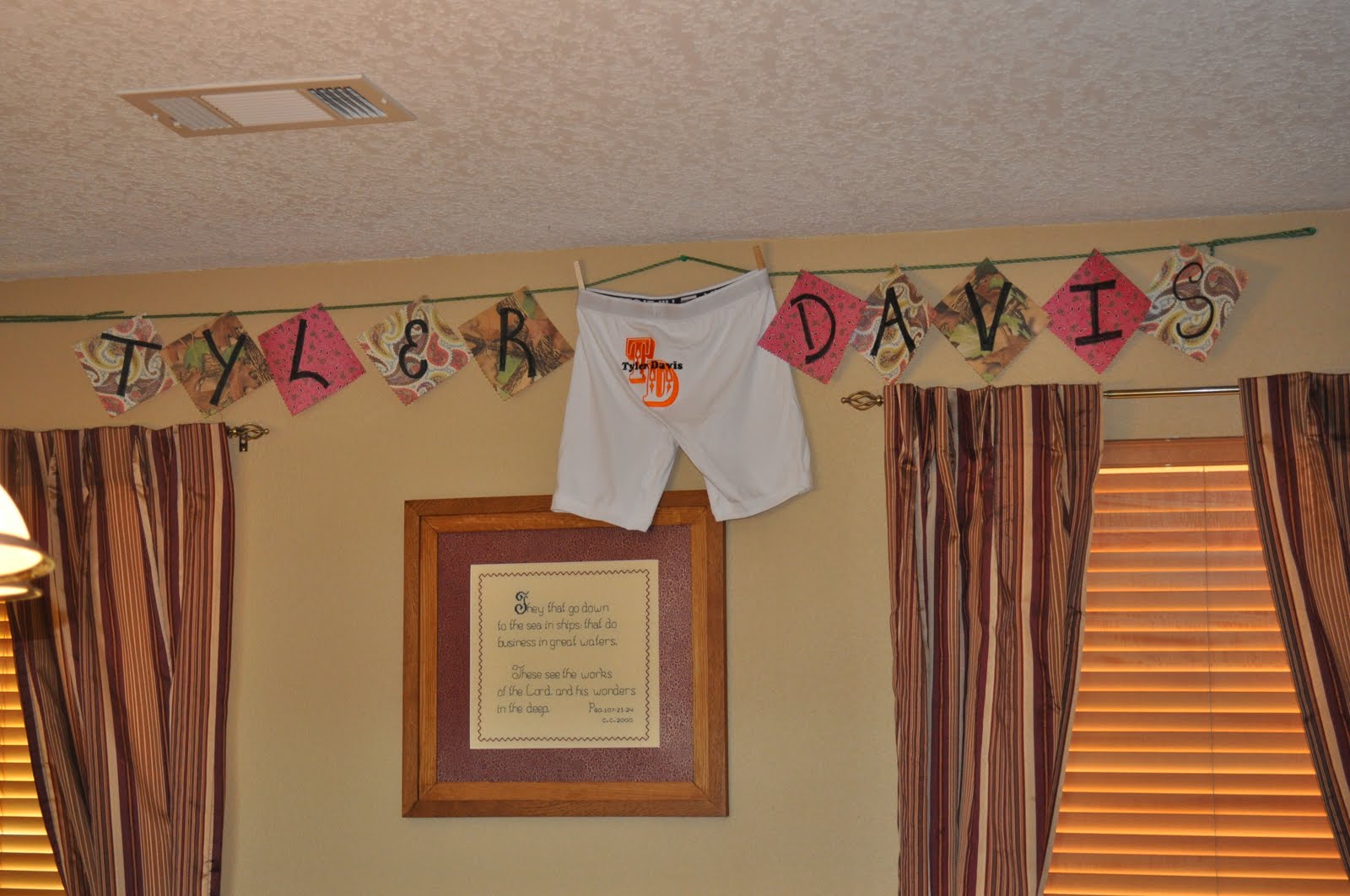 The other day some family and friends celebrated my lil' brothers birthday! His birthday was in March but he was working out of town and we just got the chance to have the party. With that said, let me tell you a little about Tyler. He's a sweet heart deep down but tries to cover it up with his tough side. Ha! Well, for years and years we have joked with him about being "The Tyler Davis" and I mean how cool is that!? If you are a country person, I'm sure you have seen the movie 8 Seconds. It jokes around about the cowboy Lane Frost having his own personalized underwear, lunch box and even boots with his name on it! So, of course Tiff and I are always like, "I got my Tyler Davis lunch box and Tyler Davis underwear!" Haha!!! Sooo, for Tyler Davis' birthday, we got him a lunch box and underwear with his name on it!!! Tyler cracked up! It was awesome and here are a few pics of that fun day!!! Hope you enjoyed this silly story as much as we did!! :)